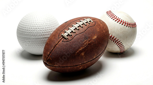 An american football sitting in front of a white baseball against a clean white background studio