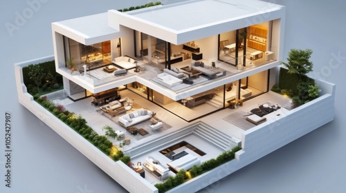 interior design, architecture, cutaway, cross section, illustration, real estate, property, living room, bedchamber, kitchen, dining room, bathroom, backyard, garden, landscaping, plant, tree, furniture, contemporary, minimalist, home decor, style, luxury, comfortable, roomy, bright, airy, natural light, window, balcony, patio, floor plan, concept, new home, house-building, building, construction, development, lifestyle, modern architecture, home improvement, modern, house, design