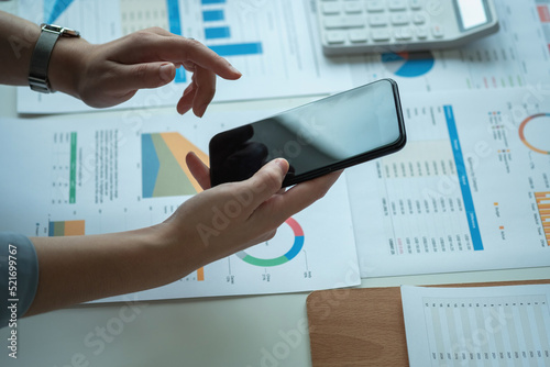 An Asian businesswoman uses a mobile phone to contact a customer to inform her of the company's business partnership.