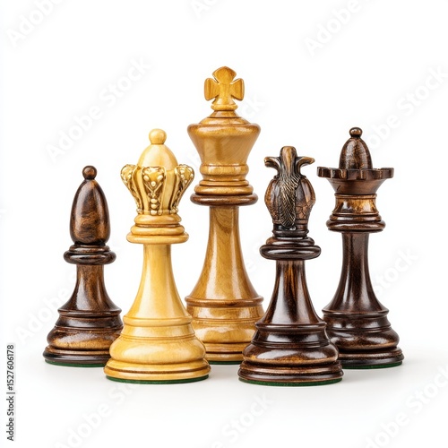 chess, piece, game, board, strategy, competition, wood, sport, play, skill, king, queen, rook, bishop, pawn, wooden, tabletop, leisure, hobby, dark, light, brown, group, set, studio, white, background, closeup, nobody, cut-out, object, table, design, macro, abstract, recreation, challenge, match, chess piece, chessboard, strategic, game