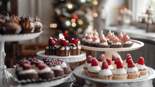 An assortment of clean desserts displayed on a decorative tray in a cozy kitchen, no text,