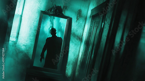 daemon, mirror, emerging, eerie, shadow, supernatural, lifestyle, dark, fantasy, occult, chilling, disturbing, creepy, atmospheric, night, menacing, surreal, ghostly
