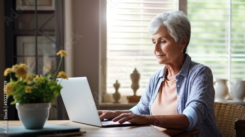 laptop, engaged, online, home, technology, senior, modern, connected, cyberspace, casual attire, living room, indoor, wisdom, activity, comfortable, focused, senior citizen, digital, relaxed, lifestyle, participation, home office, ageing, independence, learning, computer, serene, thoughtful, concentration, familiarity, routine, life events, modernity, daytime