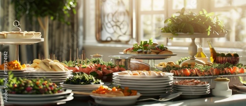 buffet, elegant, table, appetiser, salad, pastry, warm, natural light, dining, widener, variety, cookery, epicure, presentation, culinary, hospitality, event, formal, delicious, selection, inviting, tasteful, savoury, gathering, feast, sophisticated, party, reception, decor, arrangement, ambience, celebration, delectable, fresh, stylish, meal, dish, refined, entertaining, nourishment
