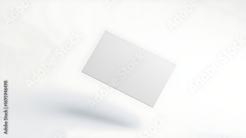 An elegant business card floating in mid-air against a clean, minimalist white background.