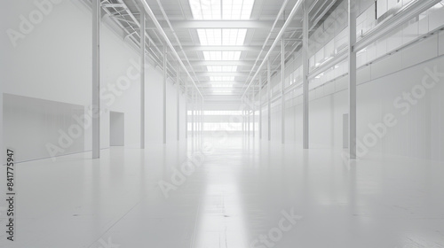 An empty big white clean warehouse. Background image. Created with Generative AI technology.