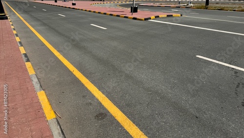 street, road, highway, curve, yellow, line, lane, marking, marking, mark, empty, asphalt, city, urban, traffic, transportation, travel, car, sidewalk, pavement, edge, roadside, clear, daytime, infrastructure, secure, driving, curved, safety, undisturbed, pathway, surface, division, tarmac, intersection, crosswalk, pedestrian, direction, stillness, calm, junction, thoroughfare, quiet, scene, ground, mobility, deserted