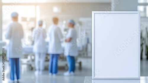 An Empty Frame in a Hospital Highlighting a Team of Medical Professionals Engaged in Critical Dialogue