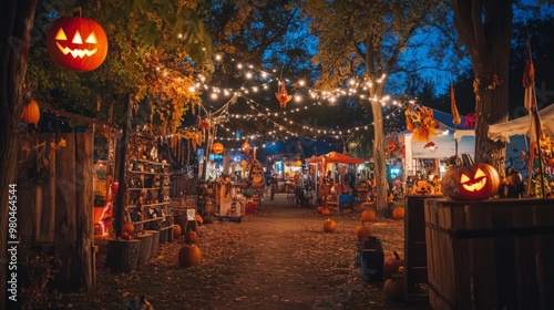 ai, halloween, autumn, market, pumpkin, light, decoration, festive, evening, tree, string, atmosphere, celebration, community, harvest, fall, event, candy, banner, shadow, stall, local, seller, family, fun, lantern, rustic, activity, nightlife, gathering, skittish, orange, yellow, nature, glow, seasonal, holiday, tradition, art, craft, interactive, pathway, decor, colourful, patch, painted, festival, colours