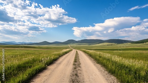 road, pathway, landscape, nature, scenery, countryside, outdoors, travel, journey, summer, field, green, blue, sky, mountain, horizon, dirt, expressway, freedom, exploration, farmland, open, kayak, rural, expanse, meadow, vale, beauty, serenity, peaceful, view, picturesque, adventure, scenic
