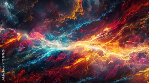 An energetic background featuring a rapid explosion of colorful lightning lines.