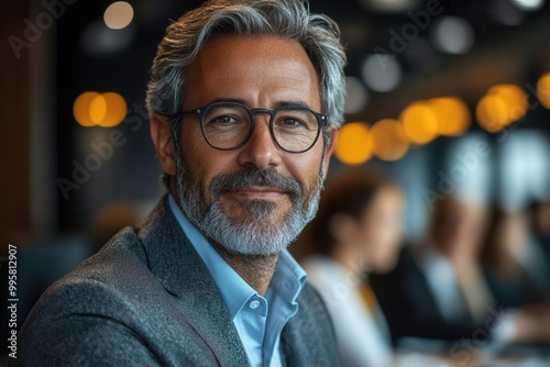 an engaging meeting scene with a businessman and financial advisor discussing investment strategies with clients in a sleek office conveying professionalism and financial empowerment