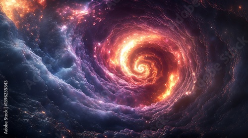 An enormous fractal vortex spiraling into an unknown dimension, radiating shimmering hues of ultraviolet and crimson. Light bends in mesmerizing ways as energy pulses through the swirling patterns.