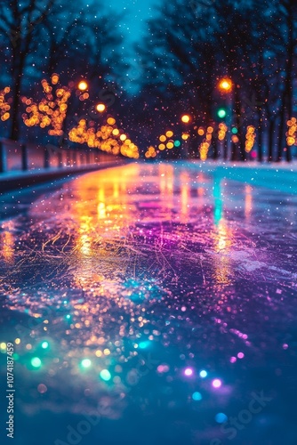 An ice skating rink with a live band playing nearby. Skaters move to the rhythm of the music, creating a lively, Generative AI