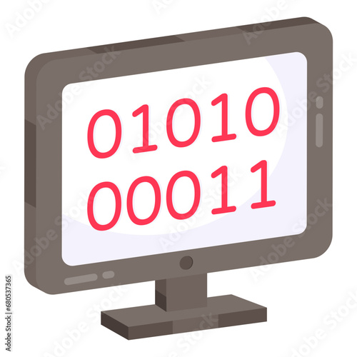 binary, datum, code, computer, digital, icon, vector, flat, monitor, desktop, display