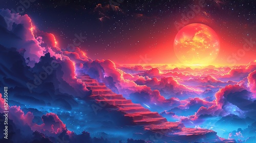 An illustration of a celestial staircase leading to the heavens.