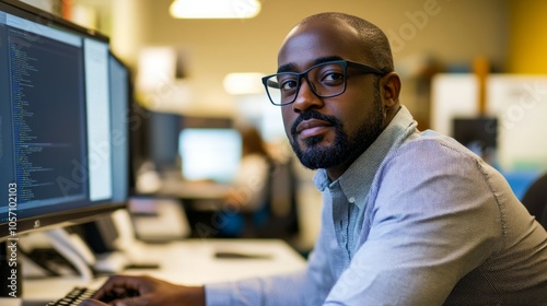 man, laptop, work, computer, software, program, diversity, security, woman, technology, office, black, creative, portrait, cyberspace, african, laboratory, artificial intelligence, young, adult, research, engineer, online, manager, motivation, system, screen, ai, development, designer, multicultural, empathy, problem solving, inclusion, professional, advanced, alone, display, female, specialist, successful, using