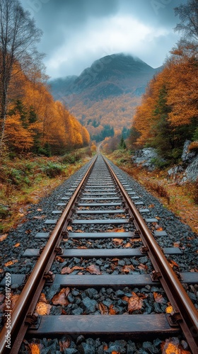 an infinite straight railway track across gorgeous landscapes precipice , ultra-high definition hyper realist