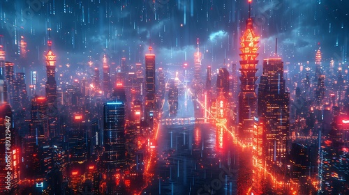 innovative, city landscape, interactive, digital, skyscraper, holographic, street, urban, beauty