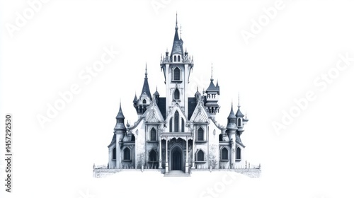 An intricate illustration of a fairy-tale castle, showcasing whimsical towers and elegant architectural details.