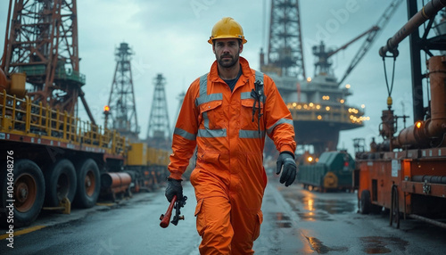 men at work, oil, rig, facility, safety, suit, hard hat, environment, tool, maintenance, service, structure, pipe, machinery, complexity, dramatic, sky, challenge, dedication, professionalism, industry, efficiency, condition, operational, readiness, hazardous, scene, essential, task, background, offshore, process, importance, protective, attire, sharpened, energy, labor, commitment, work, atmosphere, industrial, construction, crane, engineer, building, helmet