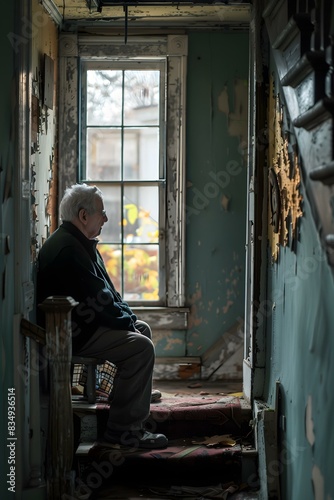 man, old, chair, abandoned, building, decay, ruin, derelict, forgotten, past, history, time, age, loneliness, solitude, isolation, sorrowful, melancholy, despair, hopelessness, lost, alone