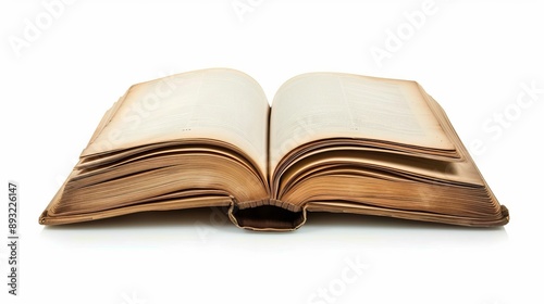An open book isolated on a white background.