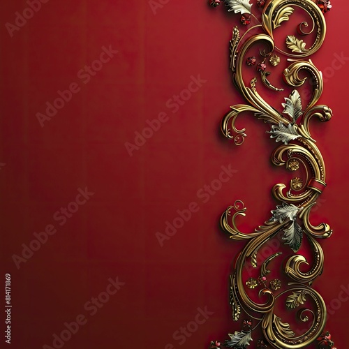 an opulent ambiance for your holiday promos with a sophisticated red backdrop, intricate golden details, and a spacious text zone.