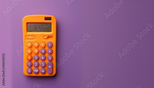An orange calculator in the top left corner of a solid purple background, essential for math calculations.