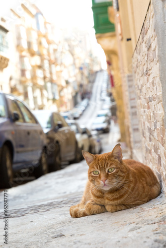 cat, wild, slope, stone, wall, history, capital, malta, island, tabby, orange, europa, lying, looking, cute, stripes, street, animal, relaxing, whisker, felino, mammal, sunny, day