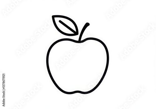An outlined apple with a leaf and stem isolated on a white background in a simple drawing style