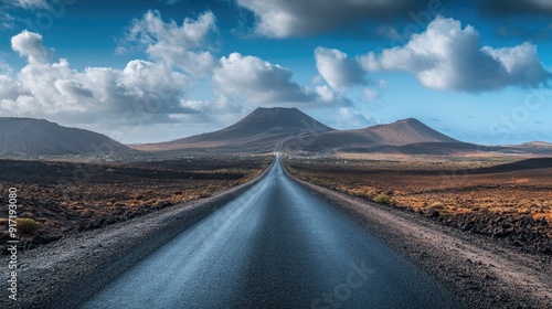 An unexplored road winding through the rugged landscape of Lanzarote Natural Park, capturing the essence of adventure and journey to a scenic destination.