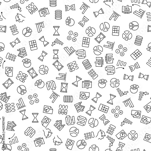 Analytics vector seamless pattern. Texture background with thin line icons. Black outline symbols of business on white background. Seamless vector pattern for web design, printable product, etc.