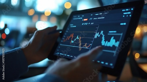 Analyzing Data on Tablet Screen in Modern Workspace