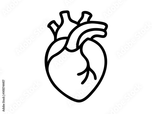 Anatomical Heart line art vector, Heart icon outline drawing vector illustration