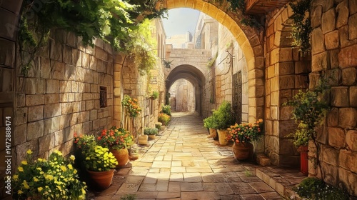 Ancient Alleyway of Old Jerusalem: Hand-Curved Stone Walls and Arches in the Heart of Israel