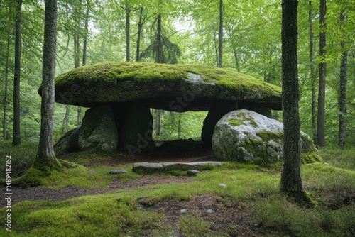 dolmen, forest, tree, stone, moss, green, nature, ancient, mysterious, historical, wood, historical building, archaeology, old, megalith, timberland, rock, historical site, landscape, rural, prehistoric, mystery, serene, calm, tranquil, peaceful, magical, enigmatic, natural, environment, shrubbery, vegetation, overgrown, summer, daylight, day, outdoors, wild