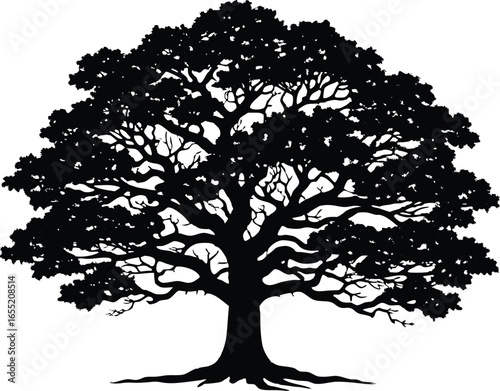 Ancient Oak Tree Silhouette | Old Oak Tree Outline Design