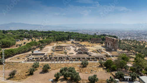Ancient Ruins of Tralleis in Aydin, Turkey with Mountains and Olive Trees