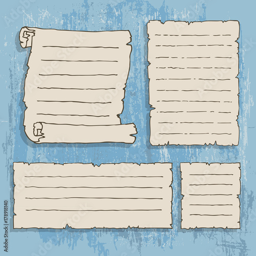 vector, set, vintage, illustration, banner, parchment, decoration, old, isolated, ancient, paper, background, white, rolled, blank, drawing, decorative, antique, history, empty, message, dirty, scroll, vignetting, manuscript, document, hand, drawn, art, letter, retro, brown, object, element, map, texture, papyrus, treasure, graphic, grunge, cartoon, invitation, design, curled, blue, beige, line, note, shadow