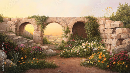 ancient, stone, bridge, wildflower, sunset, arch, ruin, landscape, nature, historic, rustic, architecture, floral, garden, ivy, countryside, serene, tranquil, vibrant, sunlight, pathway, moss, vegetation, scenic, horizon, old, artistic, atmospheric, quaint, picturesque, timeless, outdoors, travel, exploration, heritage, nostalgic, summer, overgrown, vintage, untouched, peaceful, scenery, archaeology, idylli