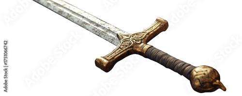 sword, blade, hilt, metal, weapon, antique, vintage, gold, handle, steel, war, battle, combat, mediaeval, fantasy, knight, warrior, edge, sharp, worn, aged, ornate, grip, leather, decoration, pattern, design, history, historical, artifact, arm, armament, guard, pommel, defense, protection, ancient, old, relic, renaissance, strong, power, strength, fight, heroism, brave, epic