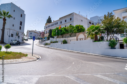 Andalucia, Spain - April 8, 2023: The white homes of a small city town against the blue sky