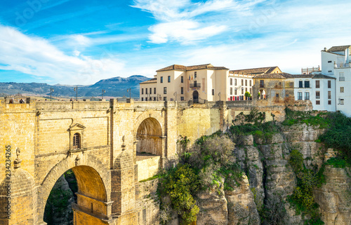 andalusia, architecture, bridge, day, europa, gorge, horizontal, nobody, palace, ronda, spain