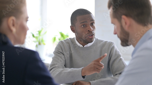 talk, connect, negotiate, discussion, communication, networking, voice, listening, client, crash, crisis, emotional stress, problem, anger, displeased, shouting, afro, african ethnicity, young adult, woman, female, male, man, mature adult, facial expression, businesswoman, businessman, working, business, trader, employee, tied-up, businessperson