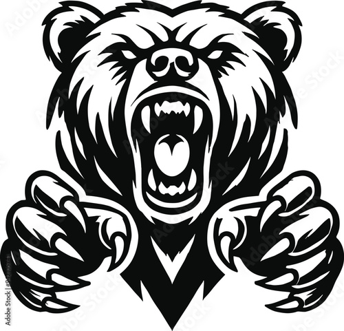 bear, illustration, animal, vector, mammal, roaring, mascot, anger, horizontal, strength, furious, fur, black-and-white, zoo, walking, wildlife, cut-out, fear, felino, graphic, hunter, insignia, large, leopard, tattoo, safari, teeth, angry, aggressive, horror, majestic, monochrome, mouth, open, powerful, dangerous, strong, sticker, silhouette, character, nature, danger, head, art, forest, animal head, isolated, attack