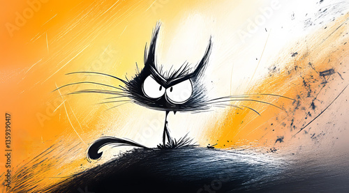 cat, black, angry, expression, background, fierce, illustration, cartoon, orange, felino, pet, character, emotion, art, design, artwork, intense, playful, whimsical, creature, nature, animal, personality, humor, stylised, attitude, graphic, modern, high-coloured, fun, dynamic, cuteness, bold, striking, artistic, animation, fantasy, energy, contrast, silhouette, adventure, creativity