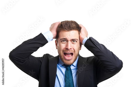 businessman, pulling, hair, anger, angry, attractive, background, boy, business, businessperson, closeup, contact, emotional, emotion, expression, eye, frustrated, frustration, furious, hand, photogenic, head, isolated, jacket, mad, male, man, mouth, open, people, person, portrait, professional, screaming, suit, teeth, attaching, white, yelling