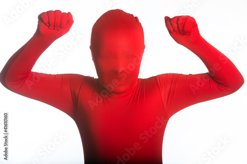 androgynous, angry, bright, children, clenched, colours, colourful, costume, disguise, fist, fun, girl, grimace, identity, children, mad, mask, pissed, pose, red, secret, skin, spandex, suit, superhero, tight, upset, vibrant