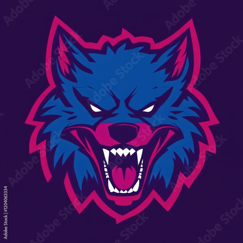 wolf, mascot, logotype, graphic, design, animal, angry, head, illustration, sport, team, artwork, roar, fierce, character, branding, image, digital, creative, modern, purple, blue, print, vector, art, style, symbol, sport